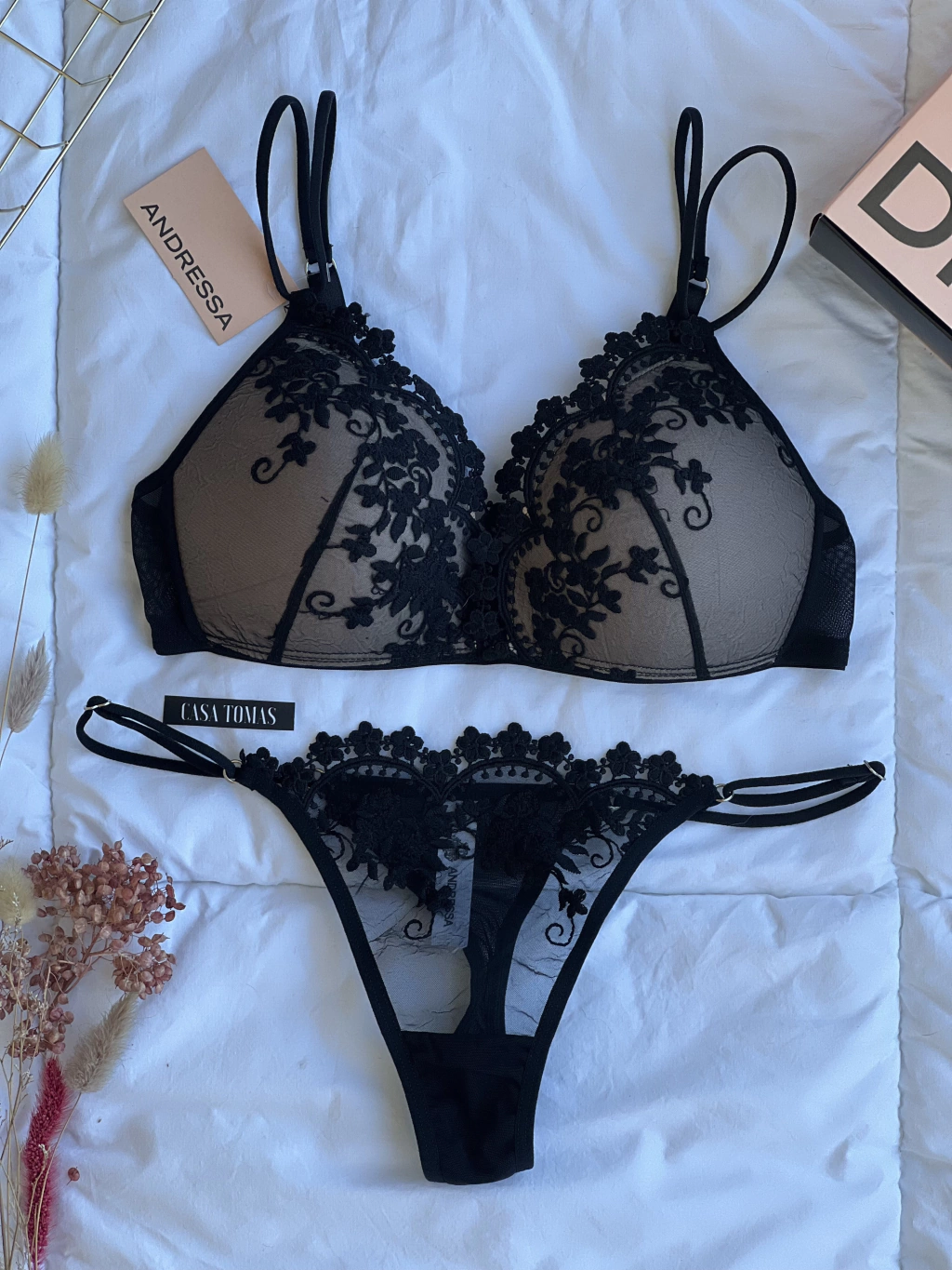 Conjunto Triangulo soft en Tul y puntilla + colaless regulable