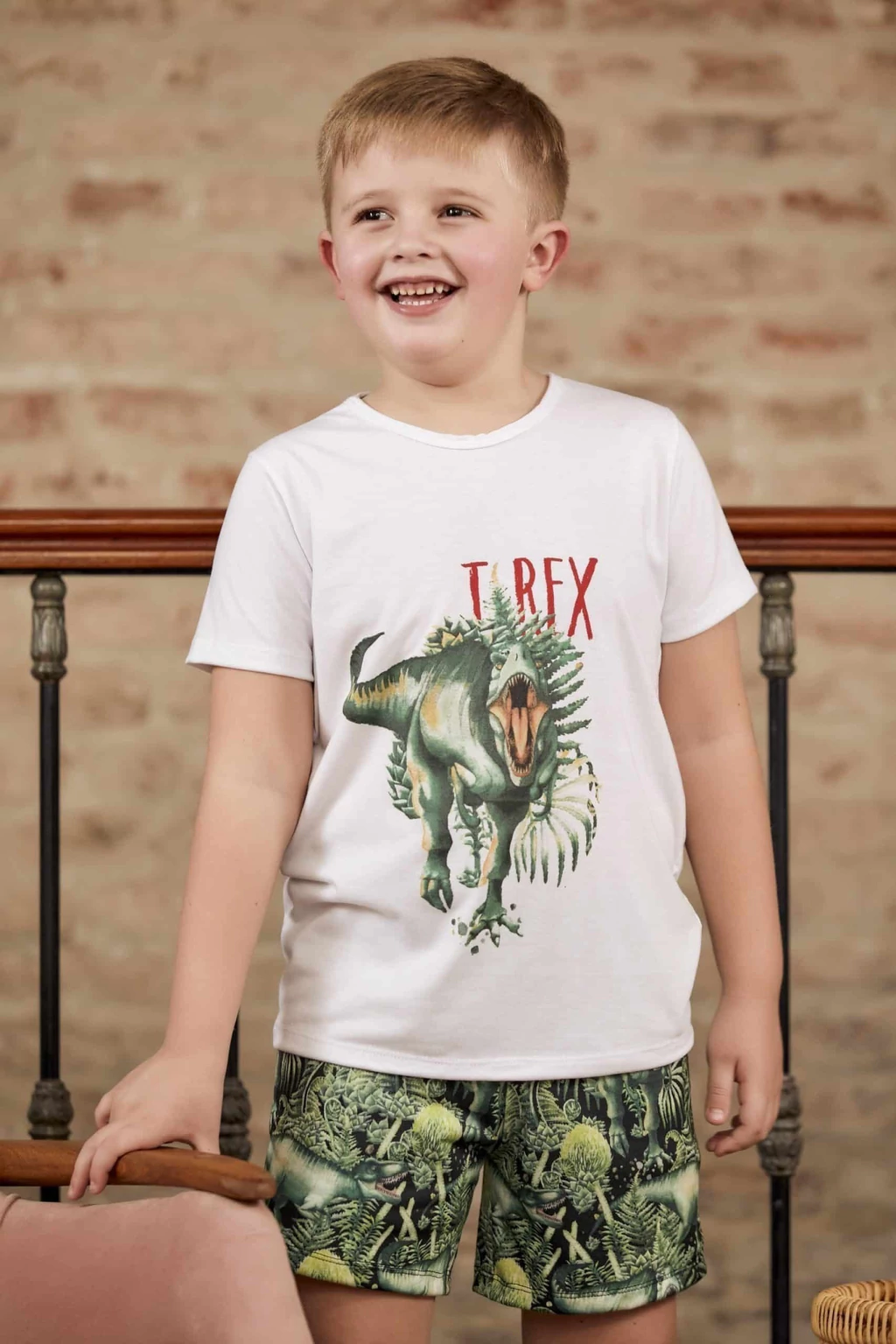 Pijama T-REX remera manga y short estampado, en modal con lycra.